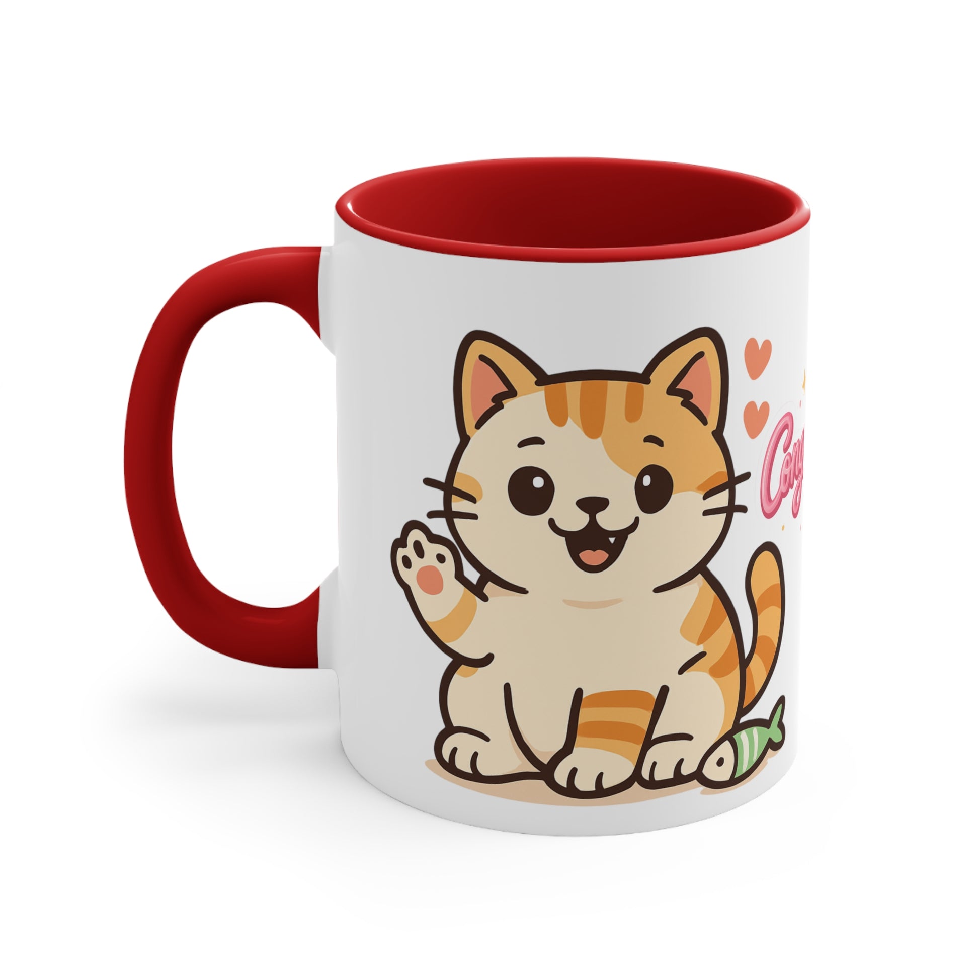 Celebratory Cat Accent Mug - Cute Congratulation Gift, Cat Lover Coffee Cup, Animal Art Mug, Joyful Drinkware, Cute Kitty Gift
