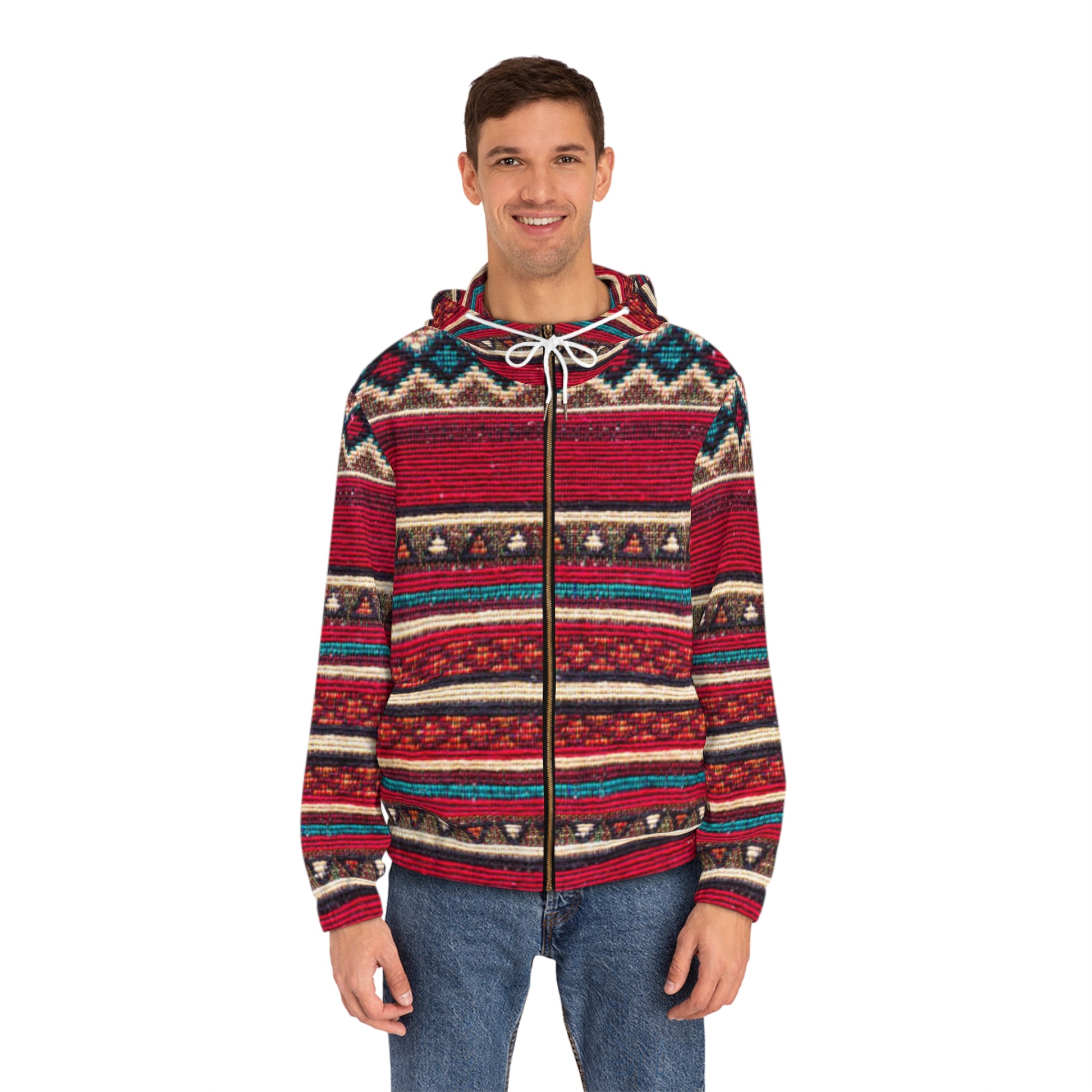 Men's Bohemian Full-Zip Hoodie, Cozy Design, Perfect for Fall and Winter, Stylish Layering Piece, Great Gift Idea, Festival Apparel